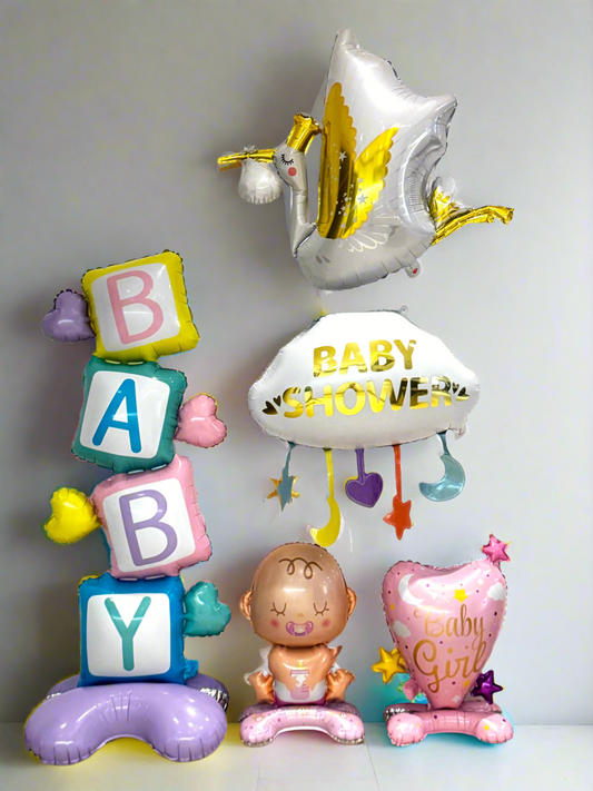 Baby Girl Pink Heart Balloon with Stars – Air-Filled