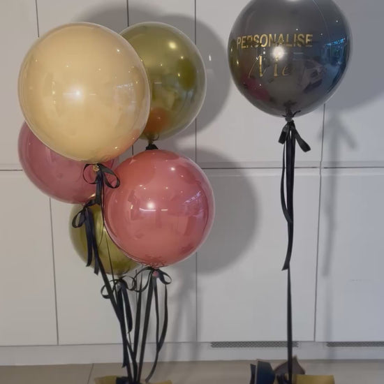 Celebrate in style with our Autumn Couture Balloon Collection. This elegant display features a bouquet of 5 double-layered couture balloons in warm seasonal tones, paired with a luxurious separate personalised black balloon with gold lettering – adding a striking and stylish finishing touch. Perfect for birthdays, celebrations, anniversaries, gifts or elegant autumn décor.