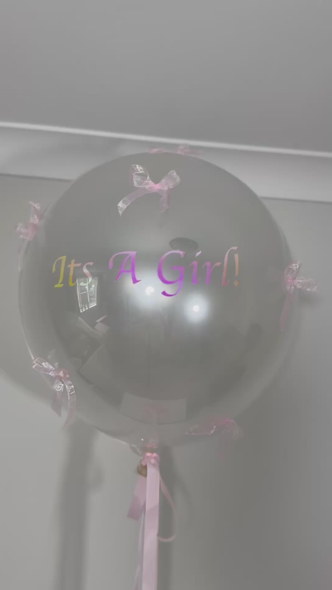 This pearly white, double-layered balloon is decorated with little pink bows and personalised with the message It’s A Girl! — a lovely surprise to welcome a new arrival.