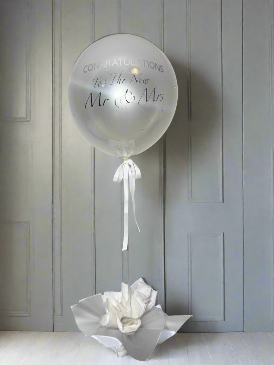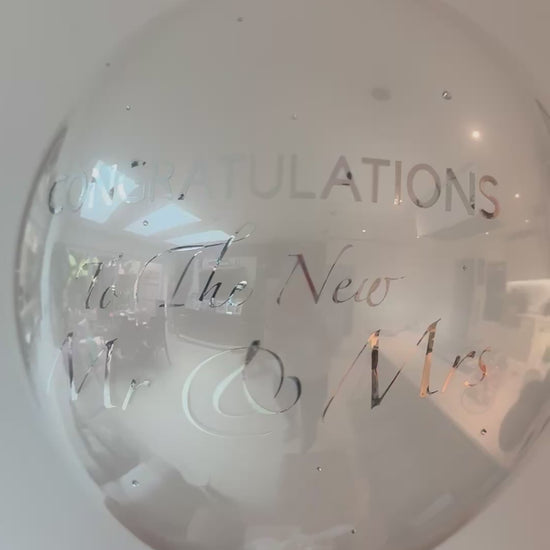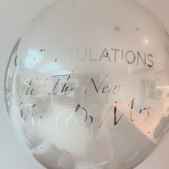 Celebrate the new Mr and Mrs in style with this elegant pearl-white balloon, personalised with “Congratulations to the New Mr and Mrs”. A thoughtful way to mark their special day – order it as a beautiful surprise for someone special.